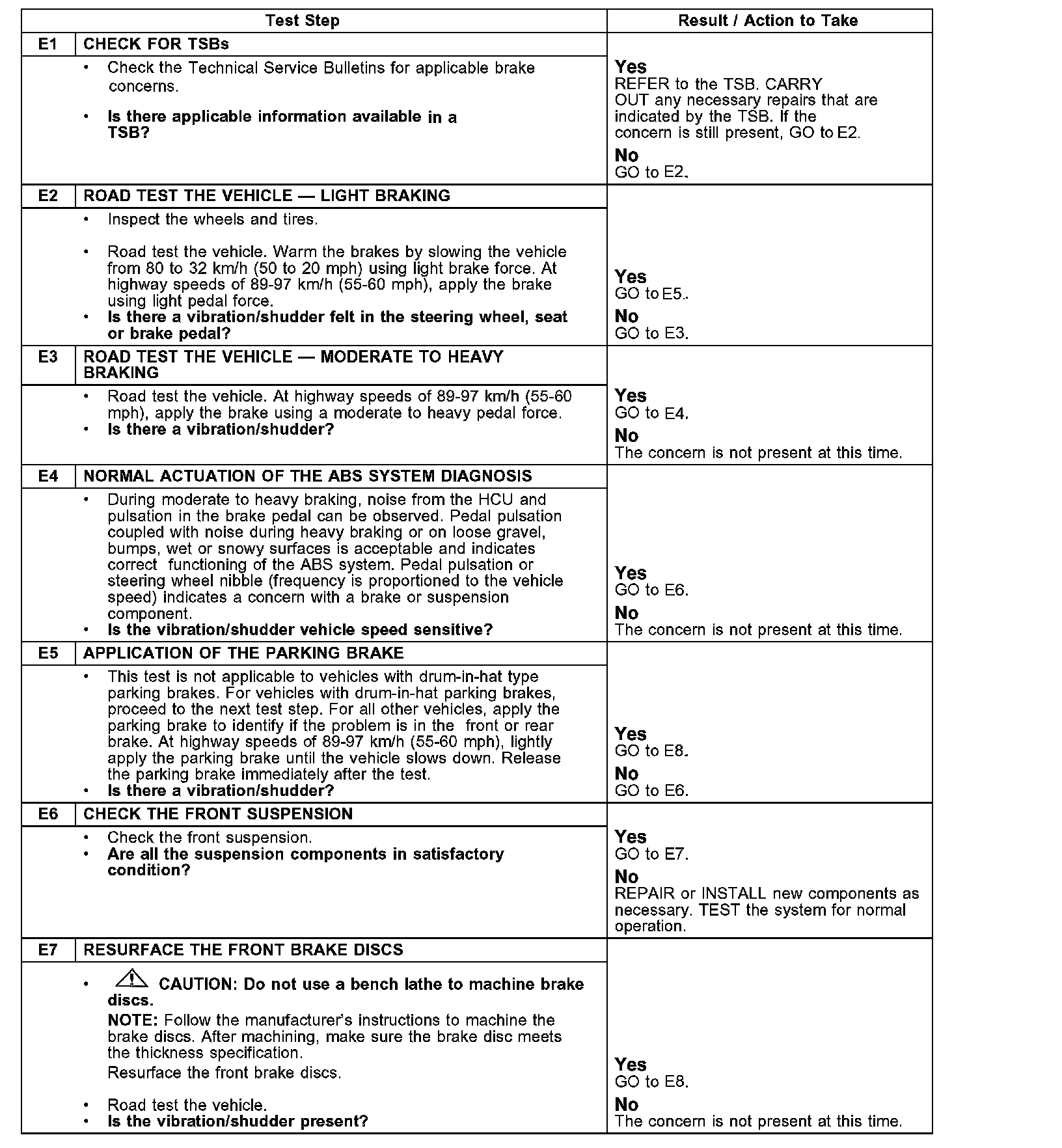 Pinpoint Test E: Vibration When Brakes Are Applied
