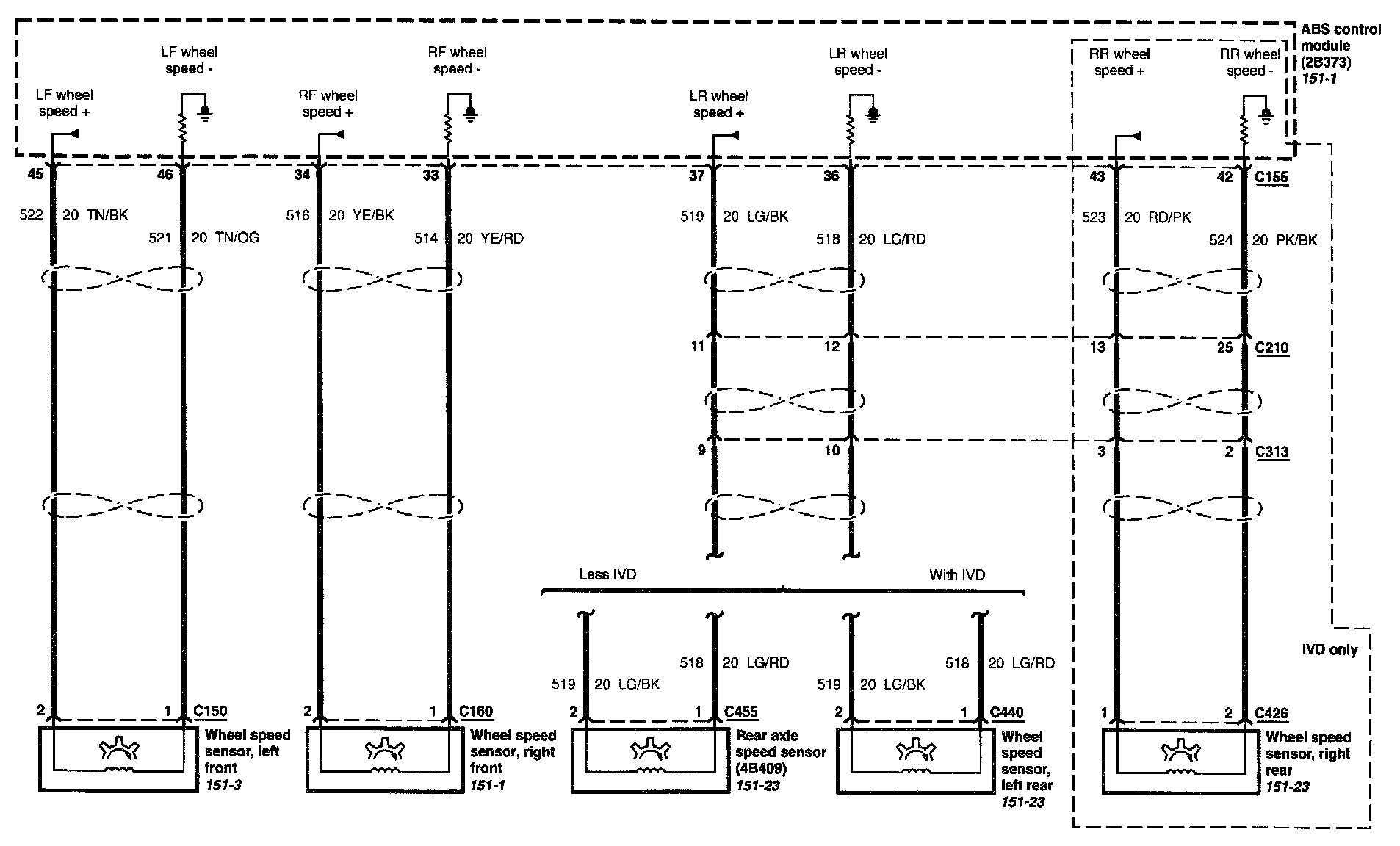Locations: Location Views (reference numbers starting with 151-) referred to within these diagrams can be found at Component Location Views. Component Location Views