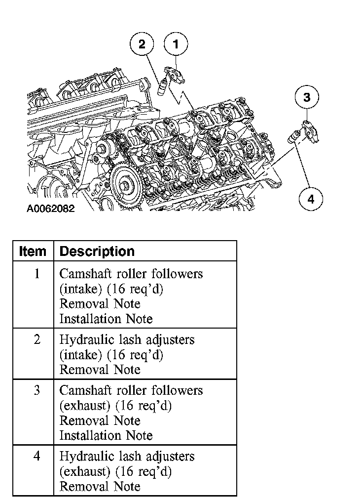 Items 1 and 3: Camshaft Roller Followers Removal Note