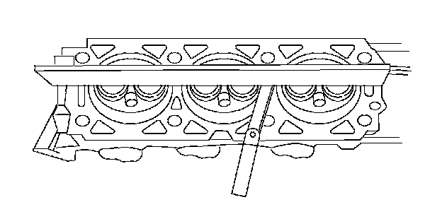 Use a straight edge and a feeler gauge to inspect the cylinder head for flatness. If the cylinder head is distorted, install a new cylinder head.