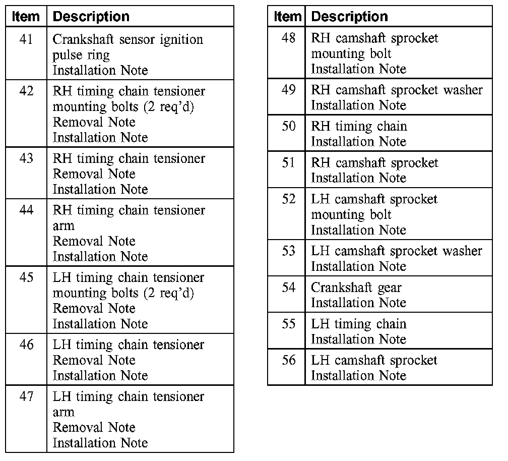 16. CAUTION: Unless otherwise instructed, at no time when the timing chains are removed and the cylinder heads are installed is the crankshaft or the camshaft to be rotated. Severe piston and valve damage will occur.