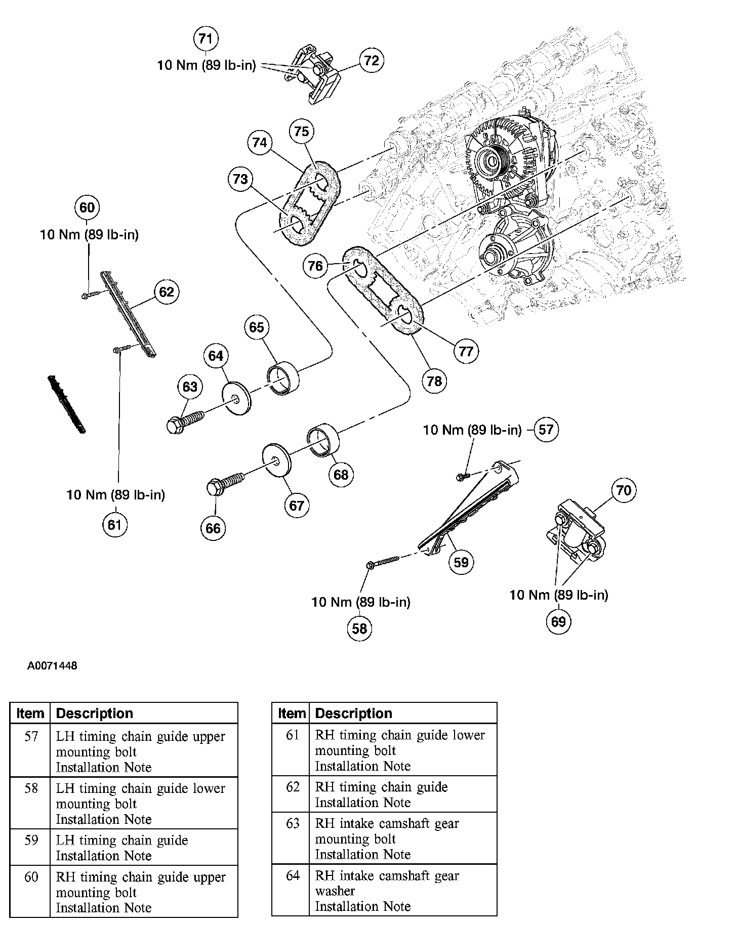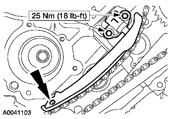 20. NOTE: The LH timing chain tensioner arm has a bump near the dowel hole for identification.