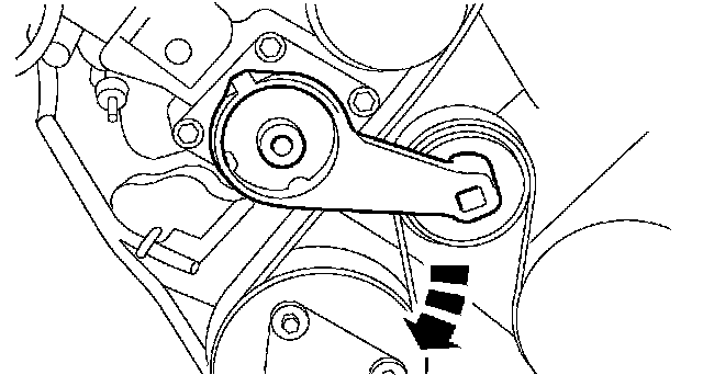 1. Rotate the belt tensioner clockwise and remove the accessory drive belt.