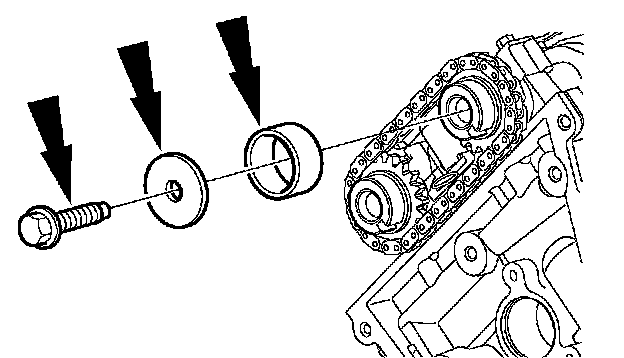4. Install the camshaft spacer, washer and bolt, and hand-tighten the bolt.