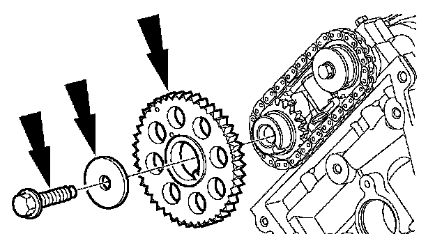 5. Install the camshaft gear, washer and bolt, and hand-tighten the bolt.