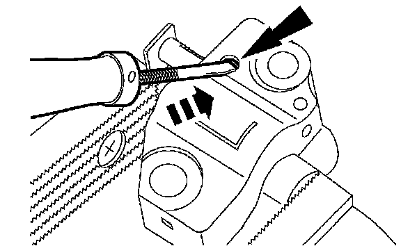 8. Using a small screwdriver or pick, push back and hold the ratchet mechanism.