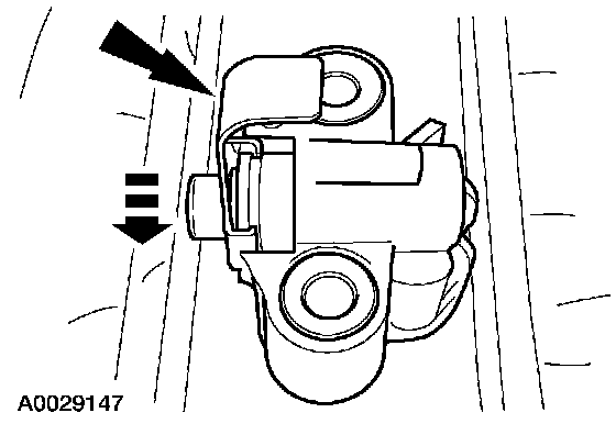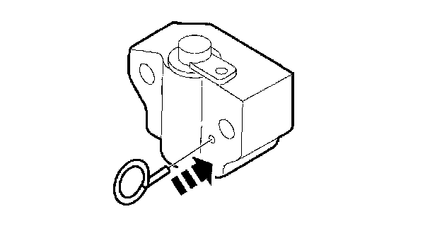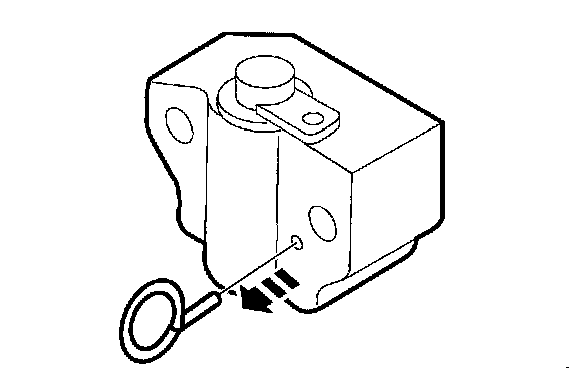 10. Install a paper clip into the hole of each tensioner housing to hold the ratchet assembly and plunger in during installation.