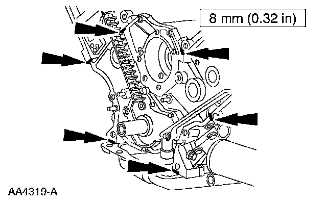 1. NOTE: If the engine front cover is not secured within four minutes, the sealant must be removed and the sealing area cleaned with metal surface cleaner. Allow to dry until there is no sign of wetness, or four minutes, whichever is longer. Failure to follow these instructions can result in future oil leakage.