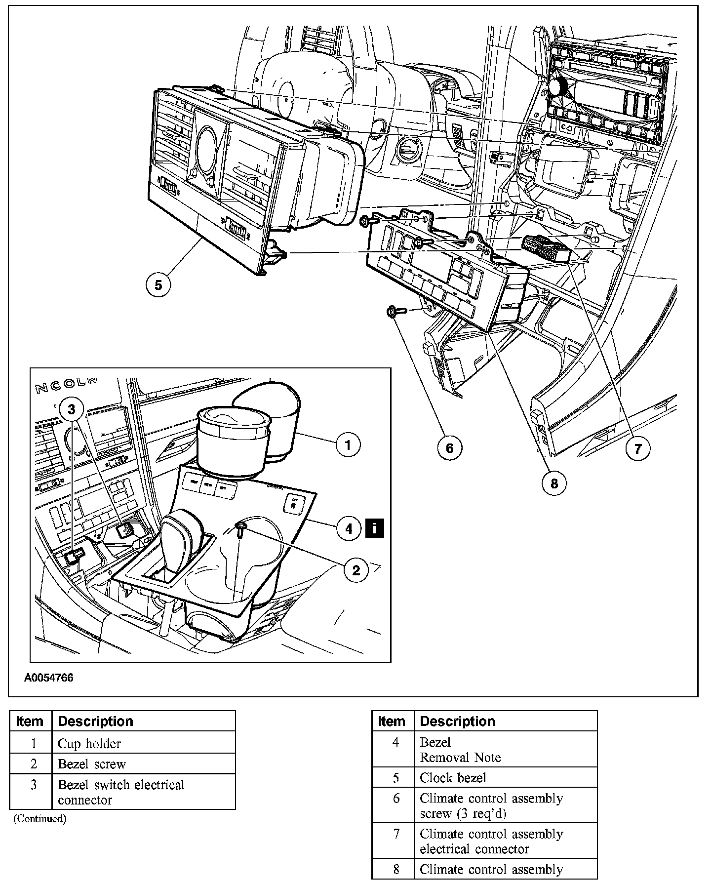 1. NOTE: The shift control bezel is only partially removed from the floor console to allow removal of the floor console center finish panel.