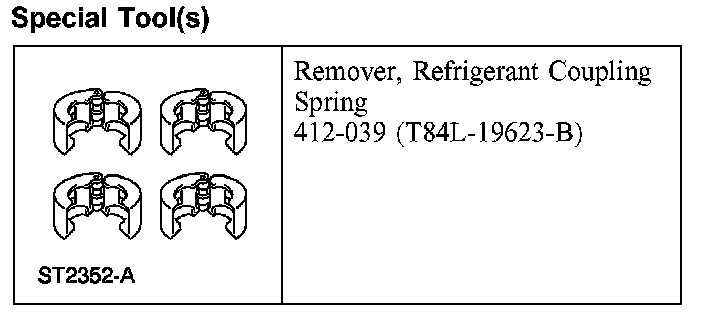 3. CAUTION: Do not use a screwdriver or similar tool to remove the A/C tube lock coupling spring; this can cause axial scratches across the O-ring seal grooves resulting in refrigerant leaks.