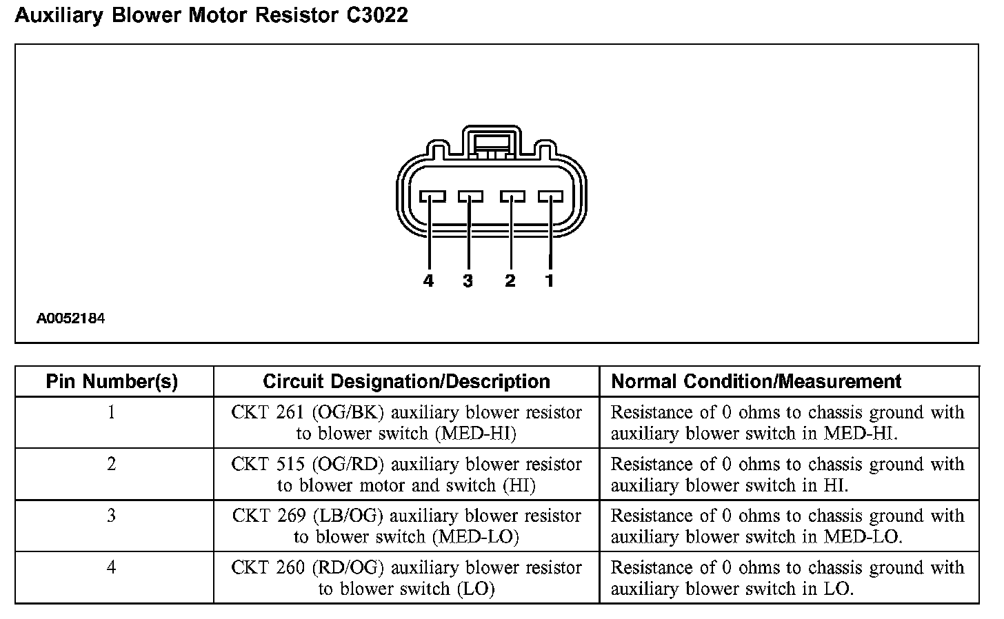 Auxiliary Blower Motor Resistor C3022: