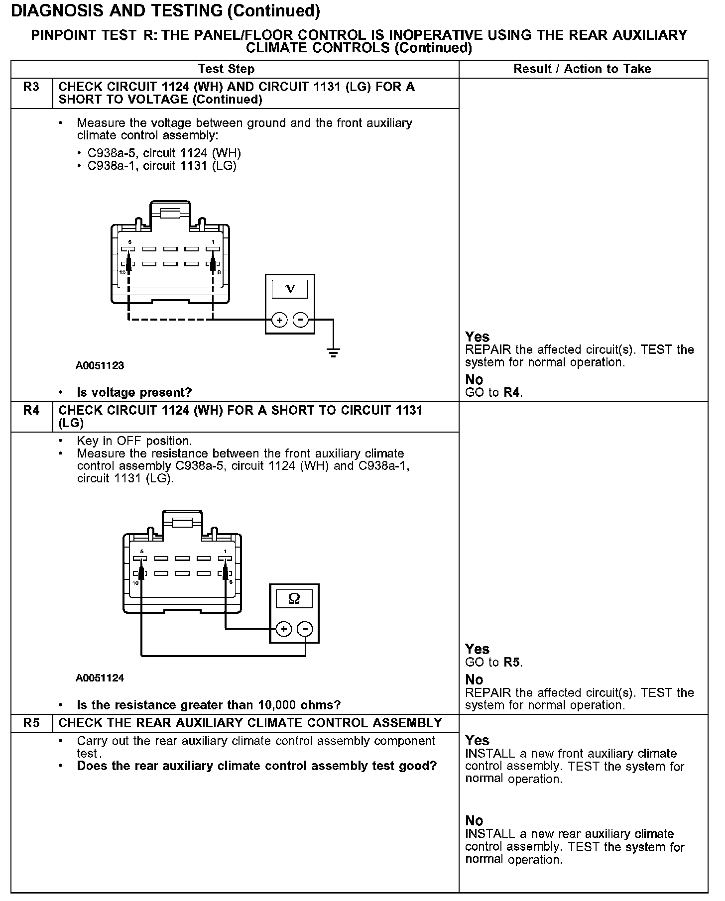 PINPOINT TEST R: THE PANEL/FLOOR CONTROL IS INOPERATIVE USING THE REAR AUXILIARY CLIMATE CONTROLSTest R1-R3: