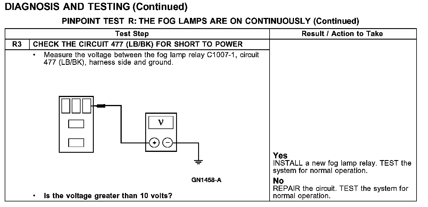 PINPOINT TEST R: THE FOG LAMPS ARE ON CONTINUOUSLYTest R1-R2: