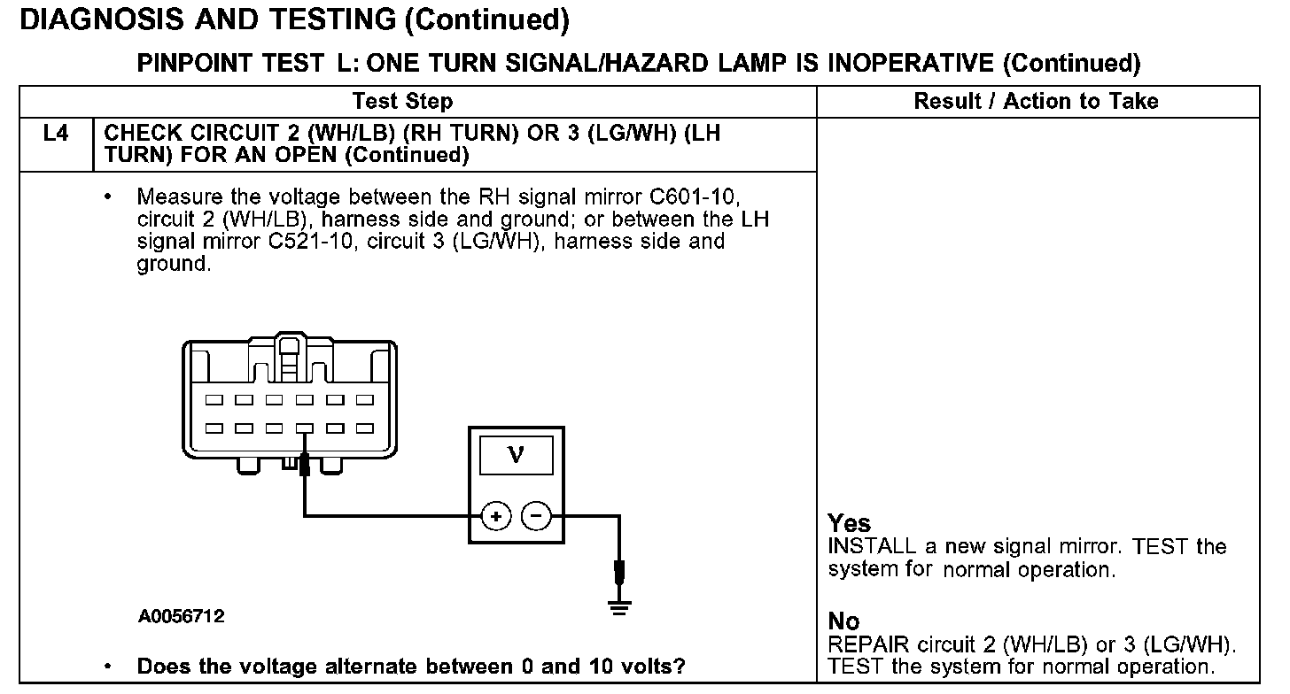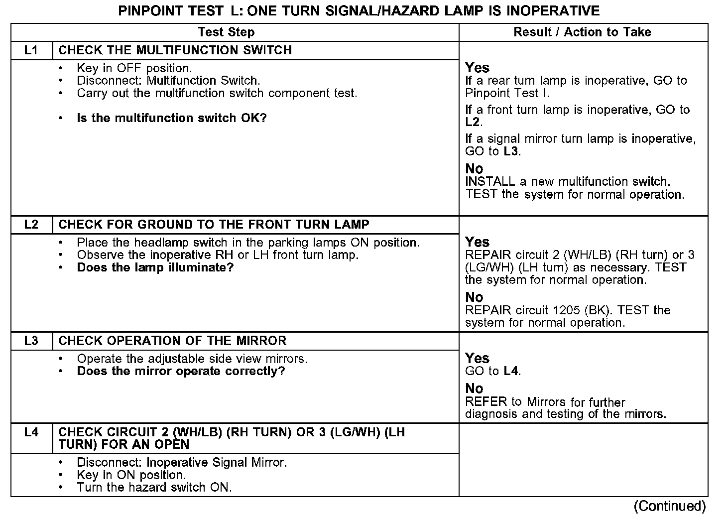 PINPOINT TEST L: ONE TURN SIGNAL/HAZARD LAMP IS INOPERATIVETest L1-L4: