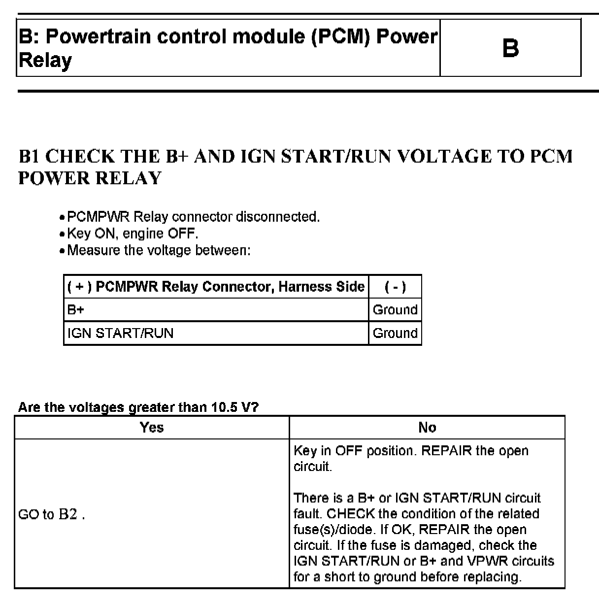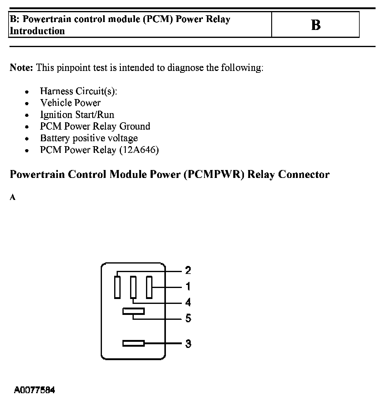 Test B: Powertrain Control Module PCM Power Relay
