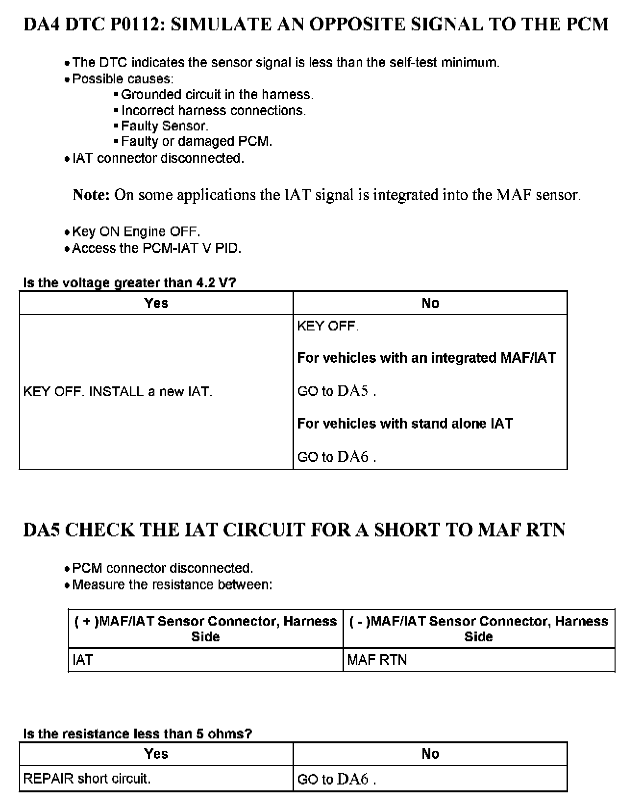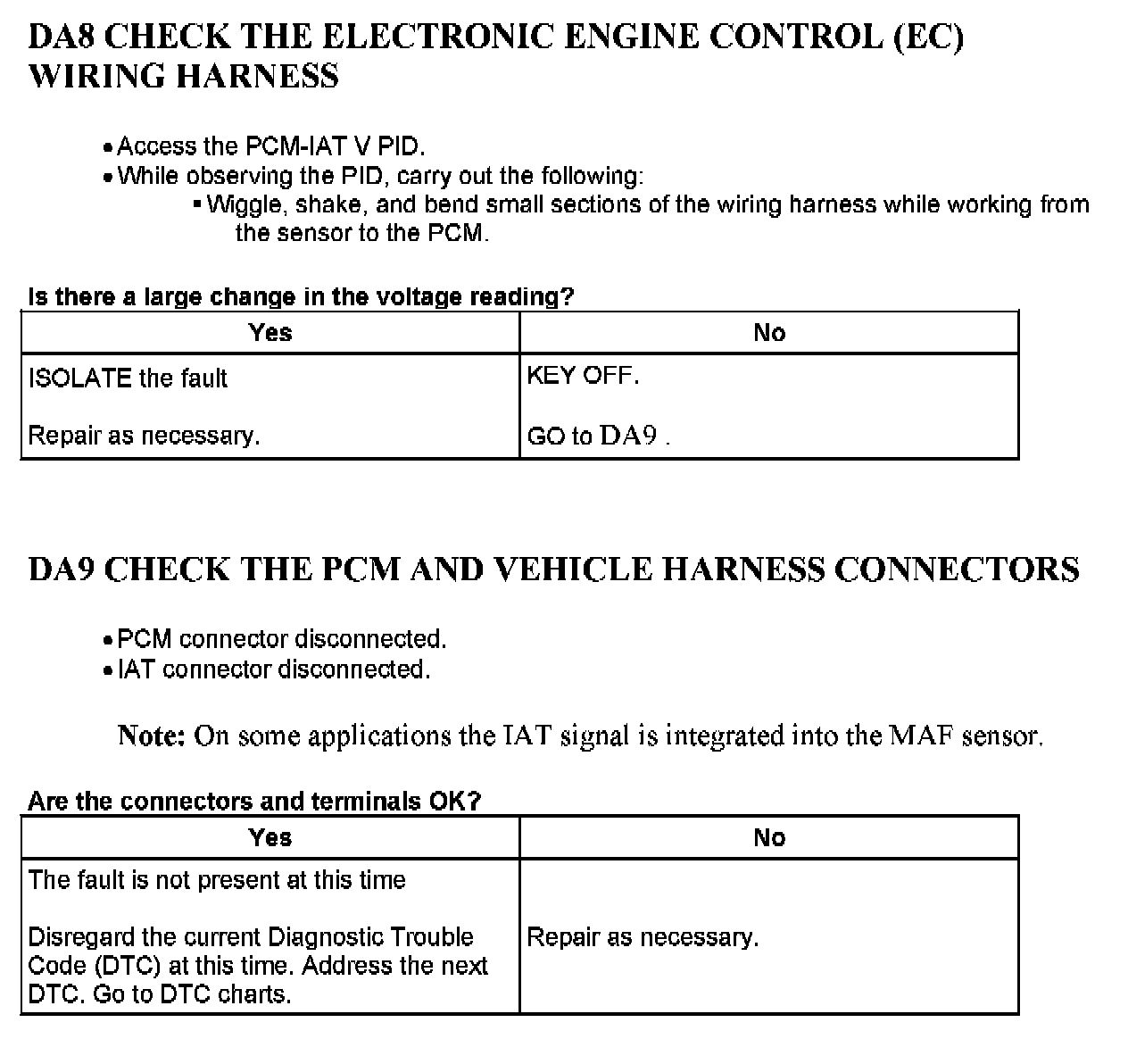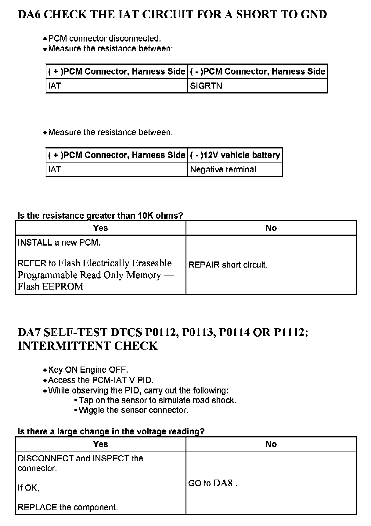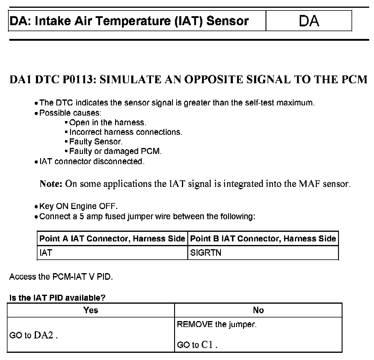 Tests DA: Intake Air Temperature (IAT) Sensor