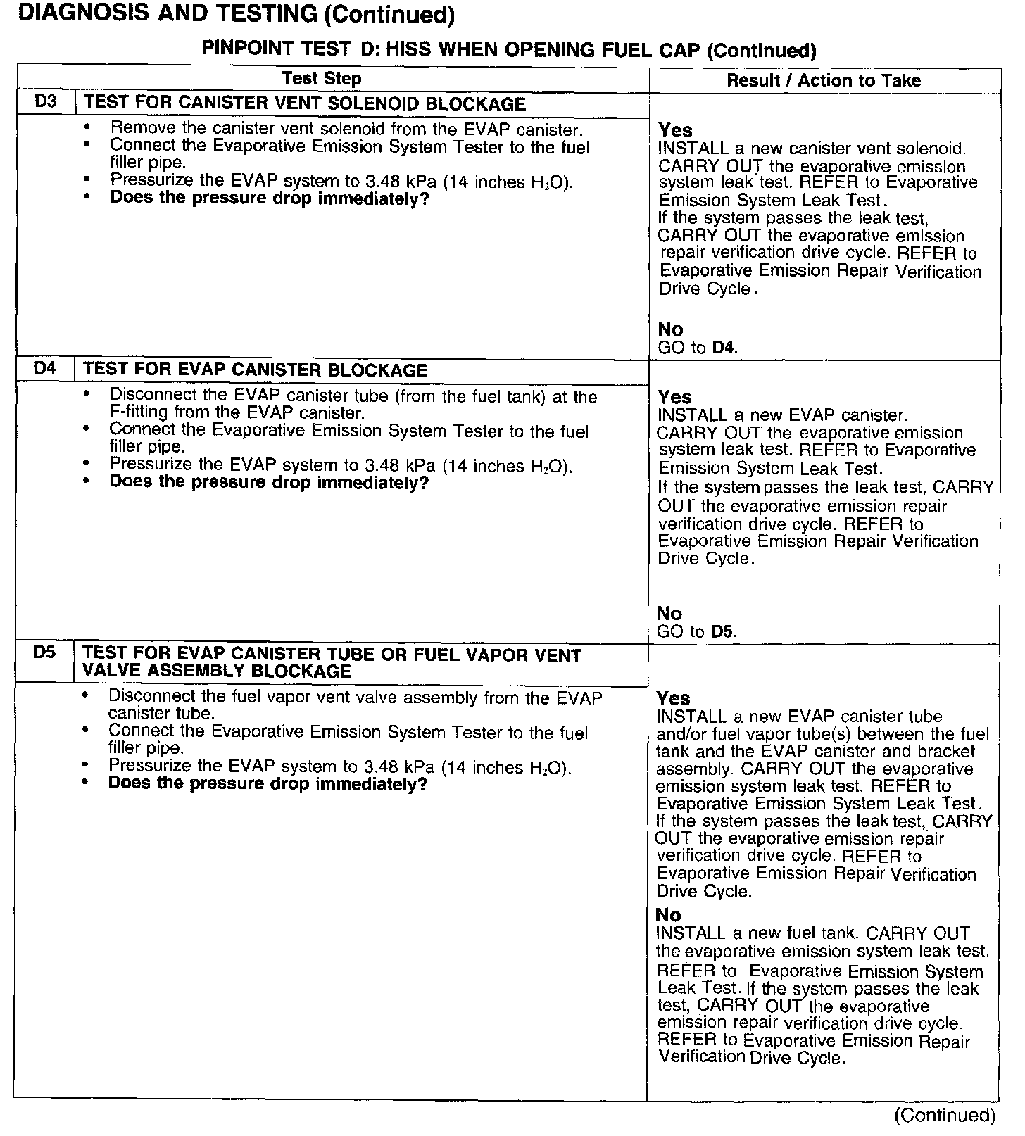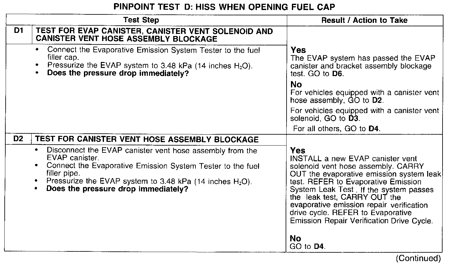 PINPOINT TEST D: HISS WHEN OPENING FUEL CAP