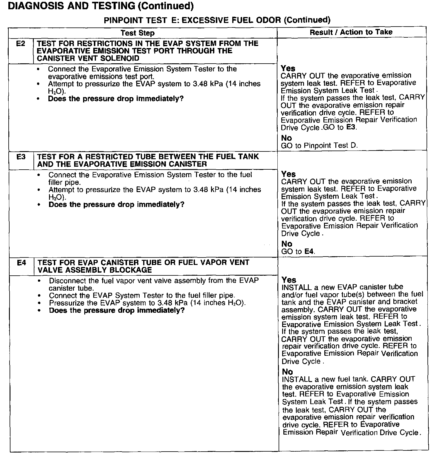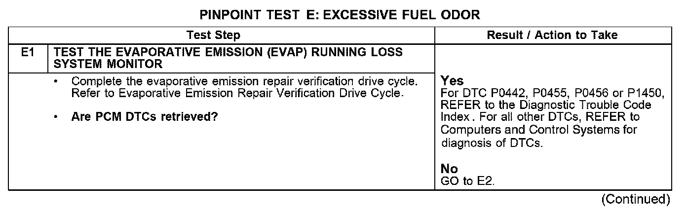 PINPOINT TEST E: EXCESSIVE FUEL ODOR