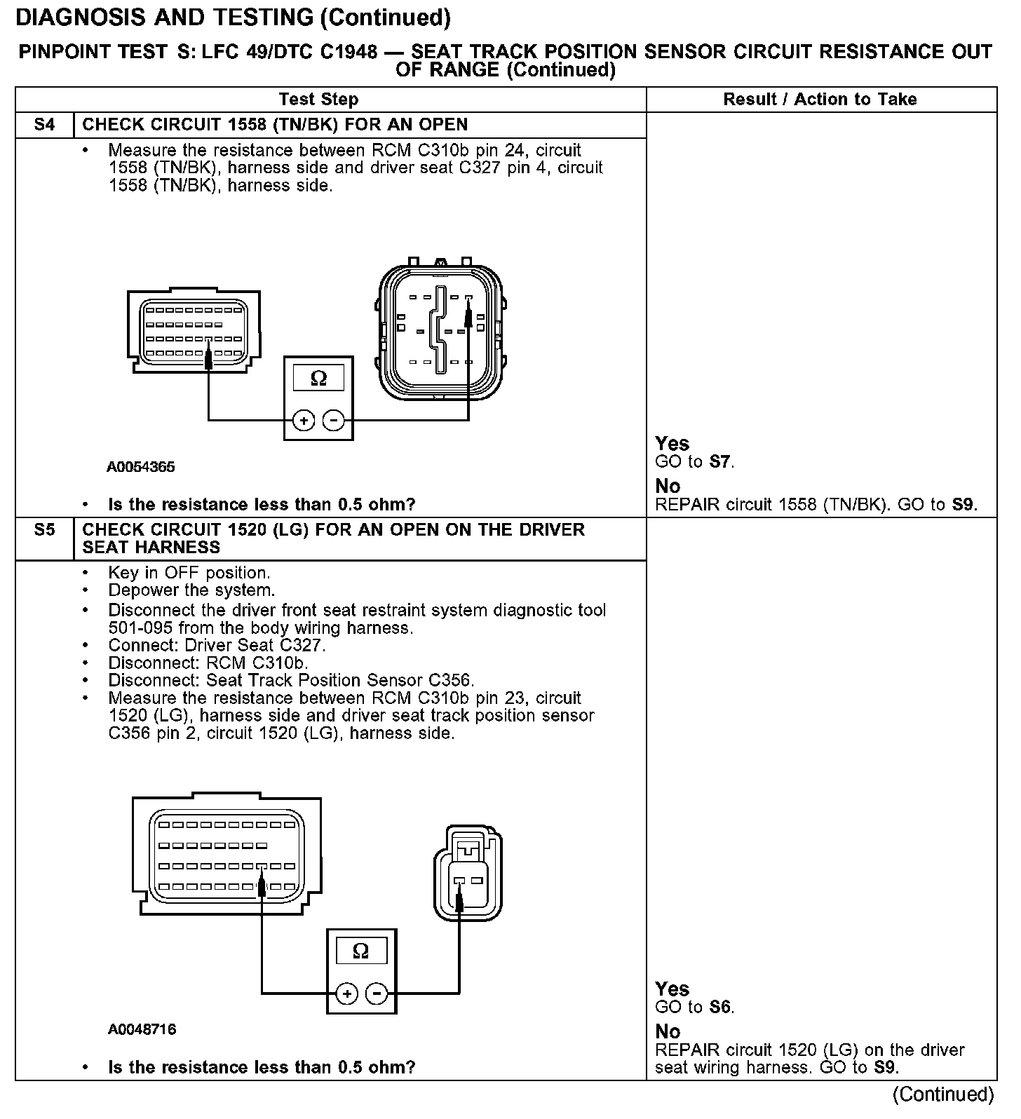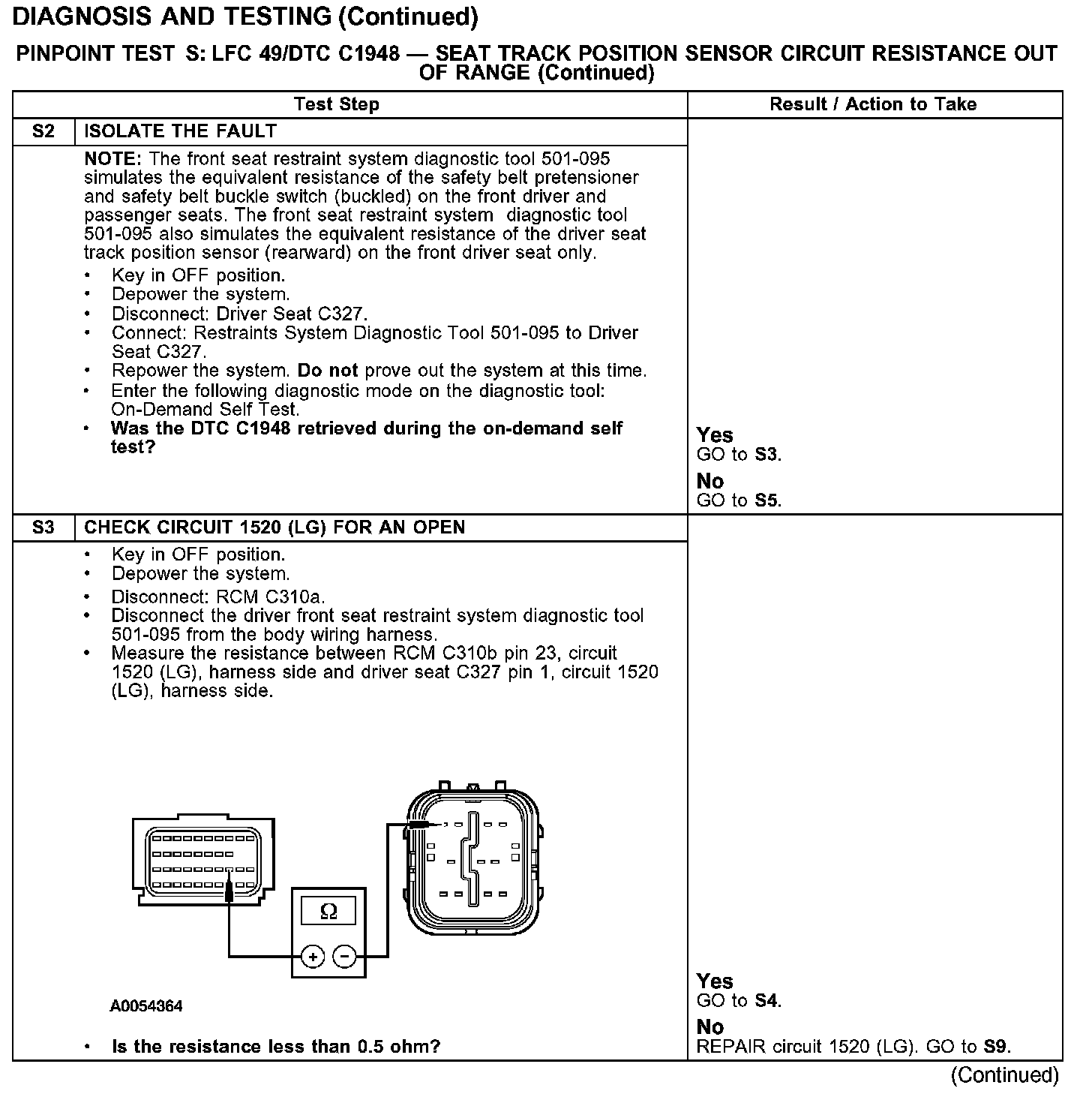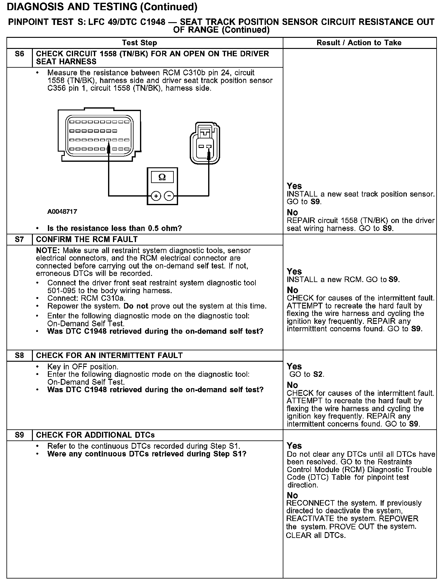 PINPOINT TEST S: LFC 49/DTC C1948 - SEAT TRACK POSITION SENSOR CIRCUIT RESISTANCE OUT OF RANGETest S1:
