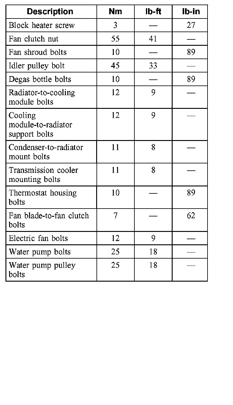 Torque Specifications: