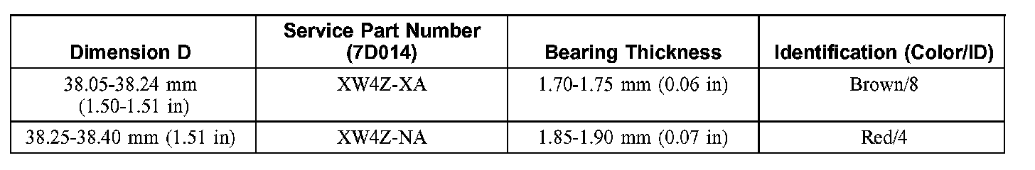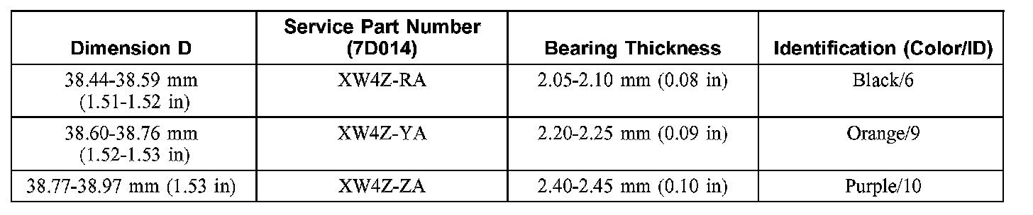 5. Select the No. 1 thrust bearing from the following chart using dimension D.