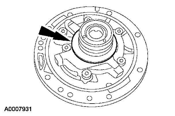 6. Install the selected No. 1 fluid pump input thrust washer.