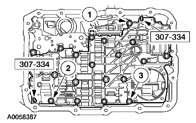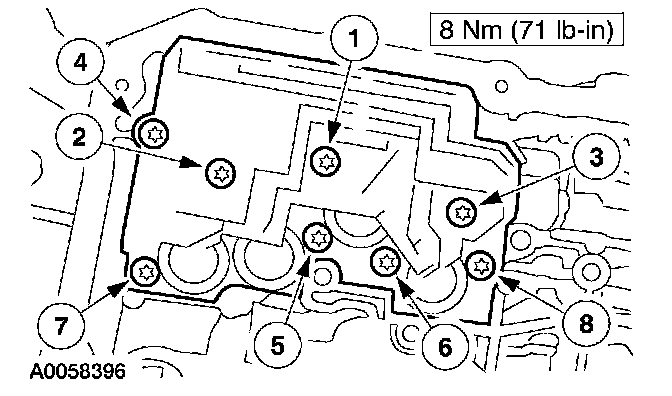 Install the solenoid body. Tighten screws in the sequence shown.