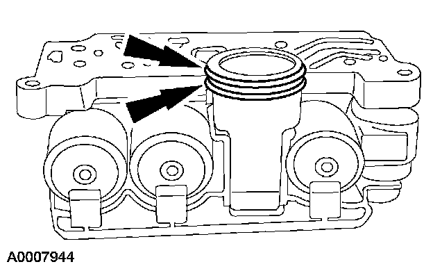 1. Install new O-ring seals on the solenoid body connector. Lubricate the O-ring seals with clean automatic transmission fluid.