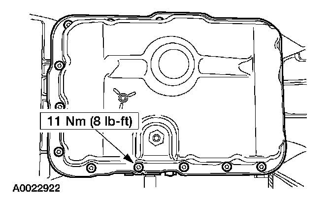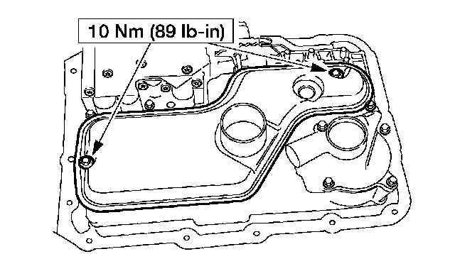 1. Install the transmission fluid pan and loosely install the screws.