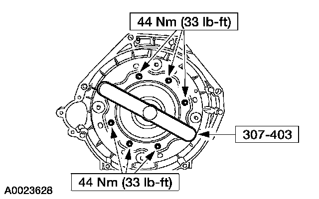 1. CAUTION: The special tool must be used to correctly align the adapter plate to the converter or transmission damage could occur.