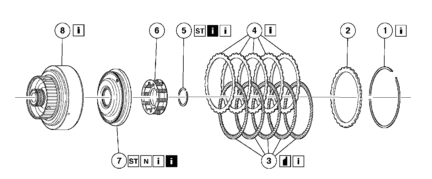2. Install the steel clutch plates and friction clutch plates in an alternating order, starting with a steel clutch plate.