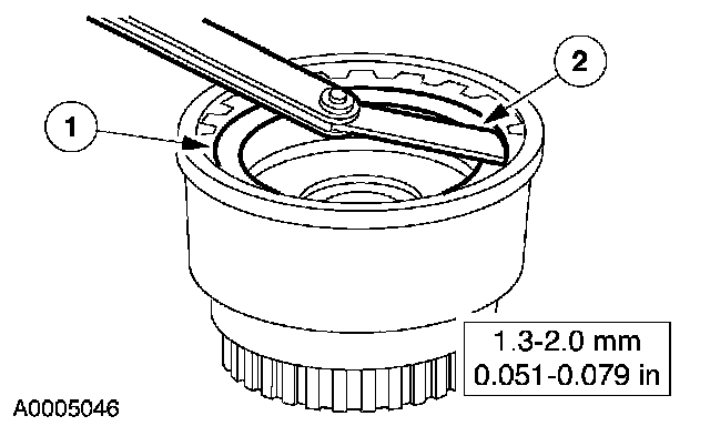 2 Using a feeler gauge, check the gap between the forward clutch retaining ring and the forward clutch pressure plate.