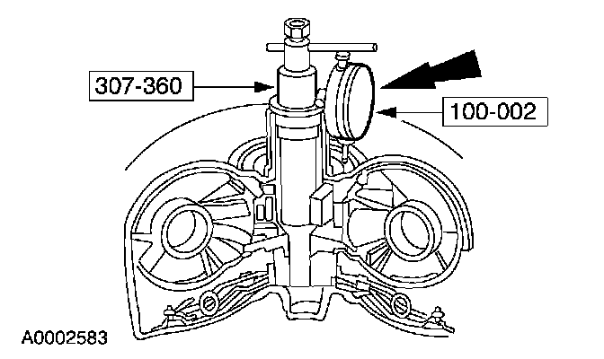 2. Install the special tool on the converter impeller housing and zero the dial.