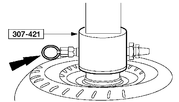6. Remove the air hose. Release the pressure, and then slowly release the press. Remove the converter. Remove the tool.