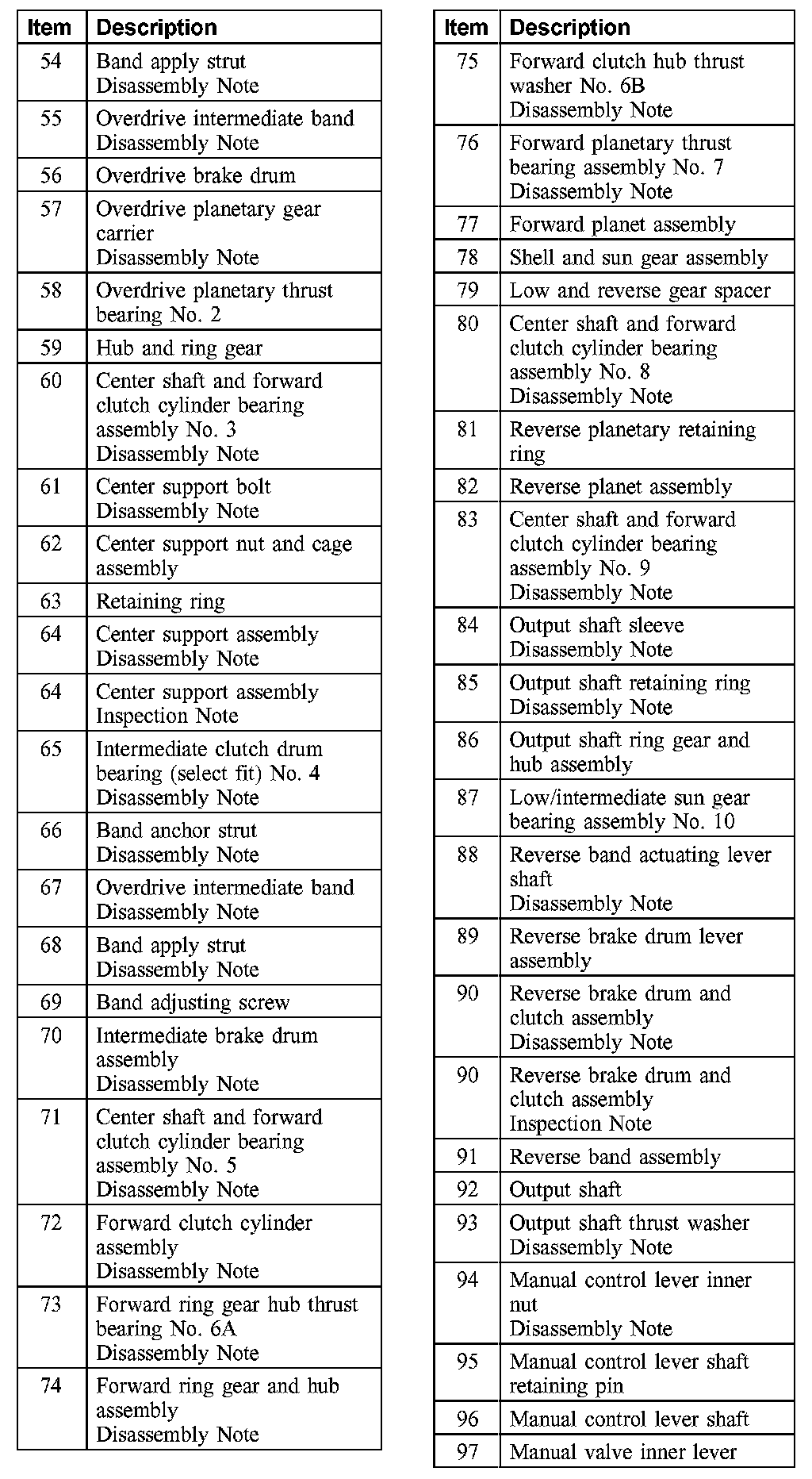 Item 67: Overdrive Intermediate Band Disassembly Note