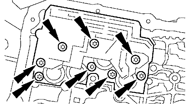 NOTE: The transmission fluid pan gasket is reusable. Clean and inspect the gasket for damage. If not damaged, the gasket should be reused.