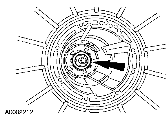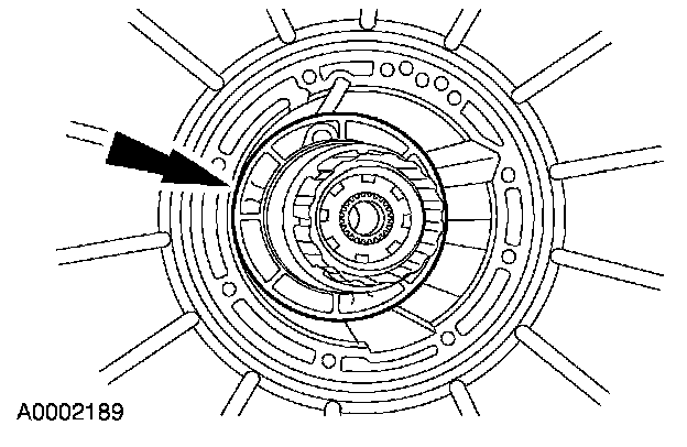 Remove the low/reverse brake drum and one-way clutch assembly by rotating it clockwise.