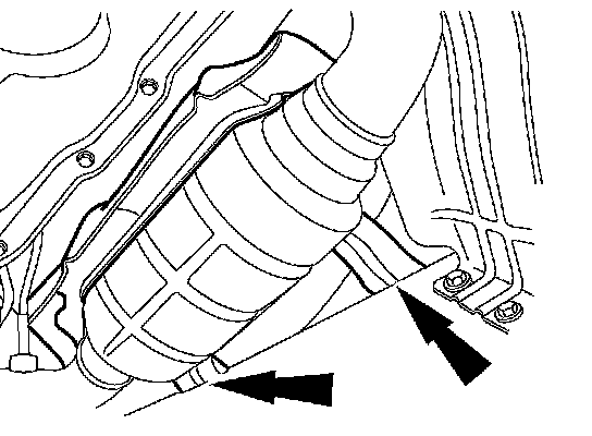 Remove the transmission-mounted exhaust hanger and the three-way converter system.