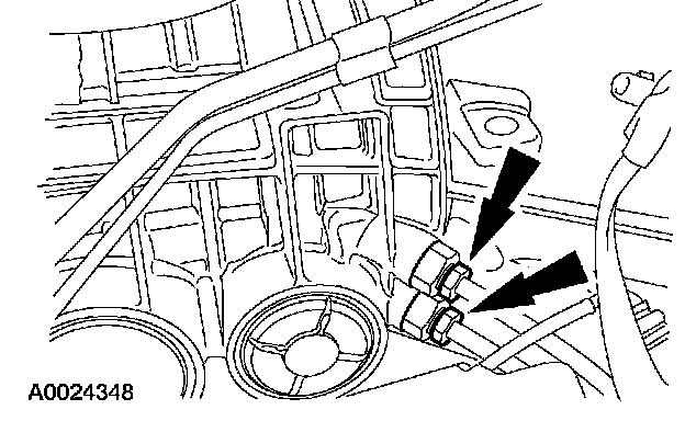 1. Disconnect the LH heated oxygen sensor and the harness clips from the transmission.