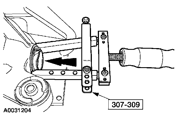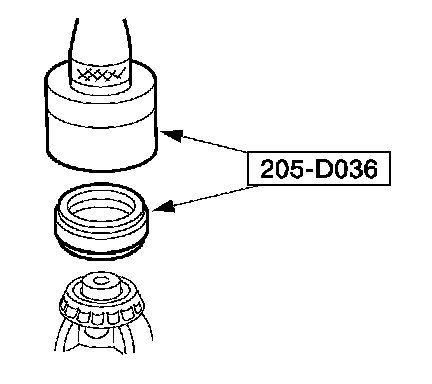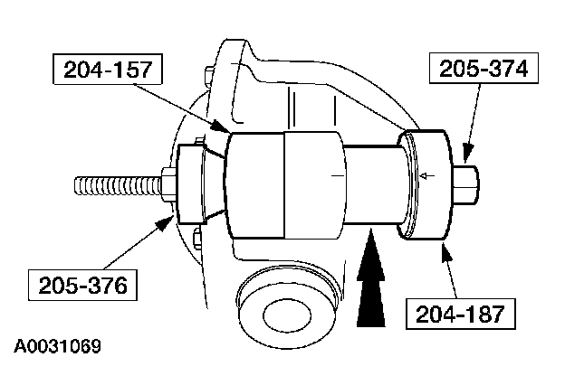 1. Position the new isolator in the housing bore and install the special tools. Align the arrow on the special tool with the index mark on the housing.