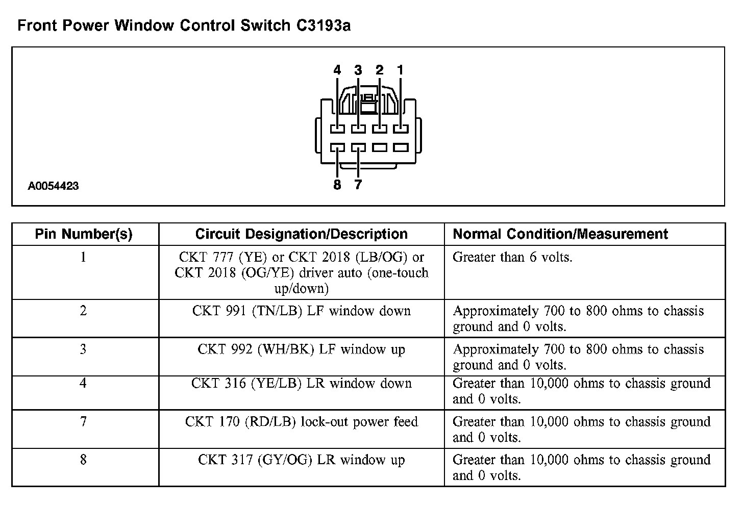 Front Power Window Control Switch C3193a: