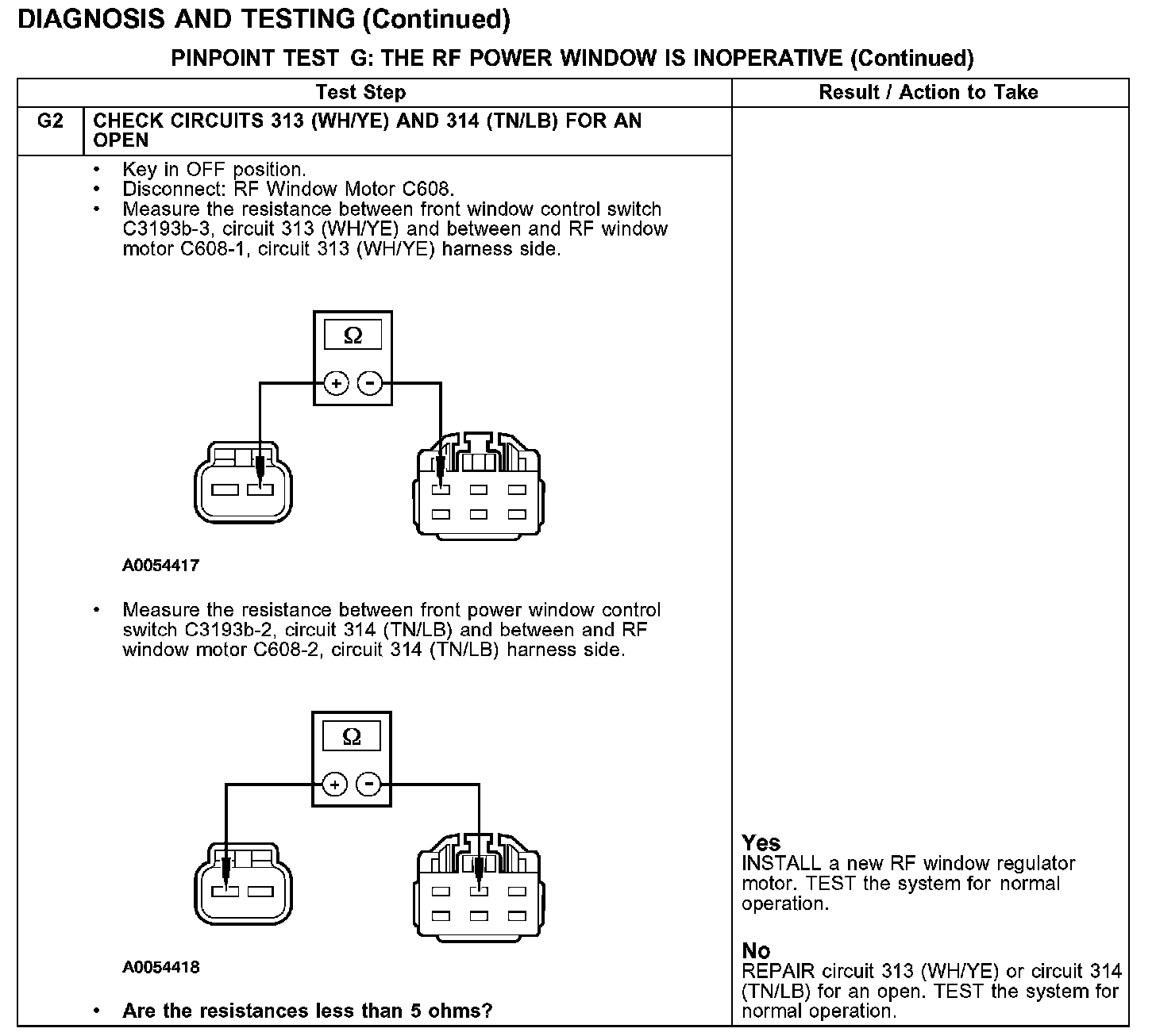 - Open in circuit 313 (WH/YE) or circuit 314 (TN/LB).