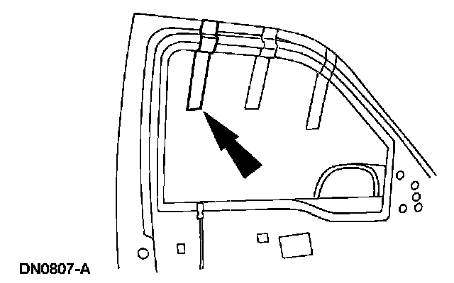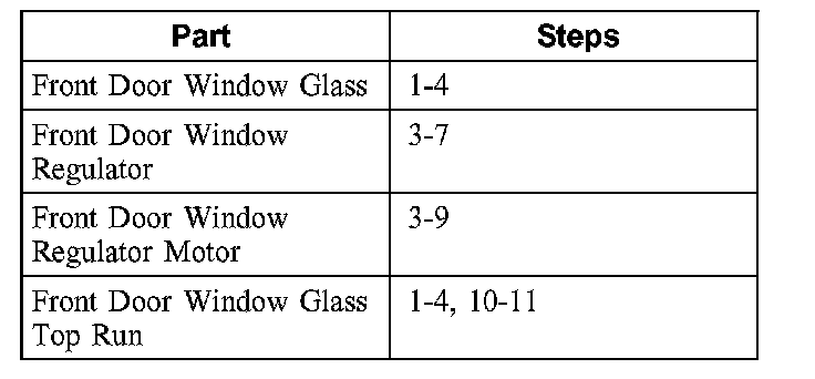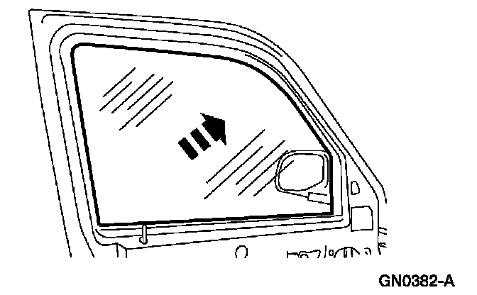 2. If removing the front door window glass, pull glass out through the top inboard side of the door.