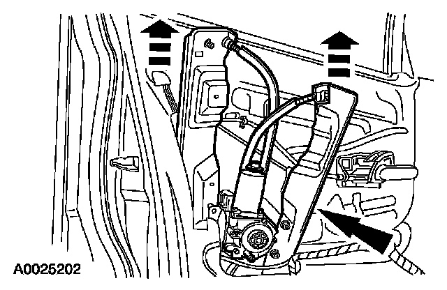 Disconnect the window regulator motor electrical connector and pull the motor through the door opening.