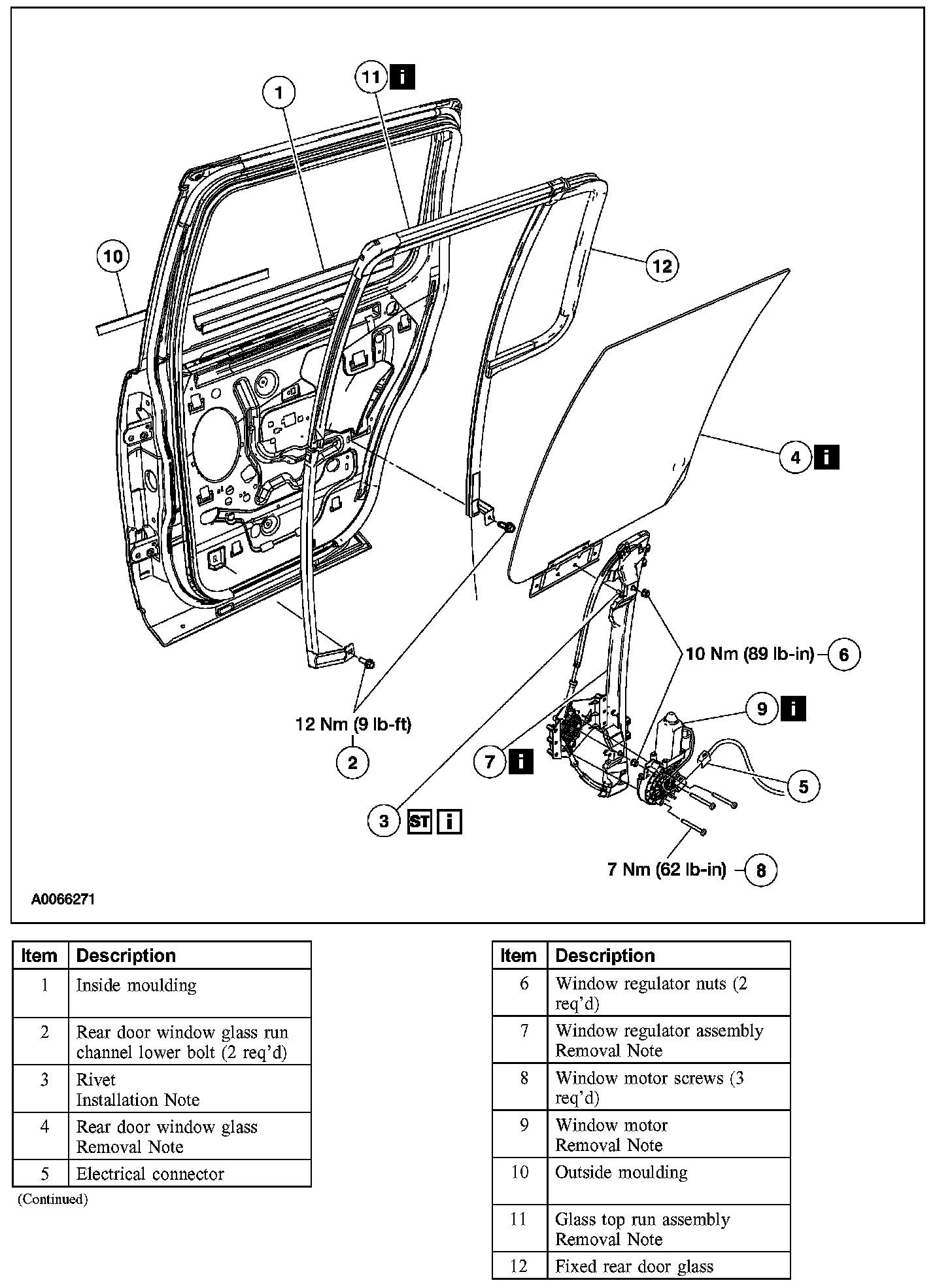 Item 7: Door Window Regulator Assembly Removal Note