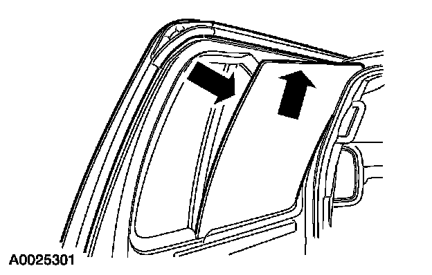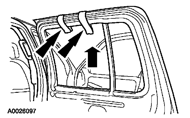 3. If removing the rear door window glass, pull the glass out through the top inboard side of the door.