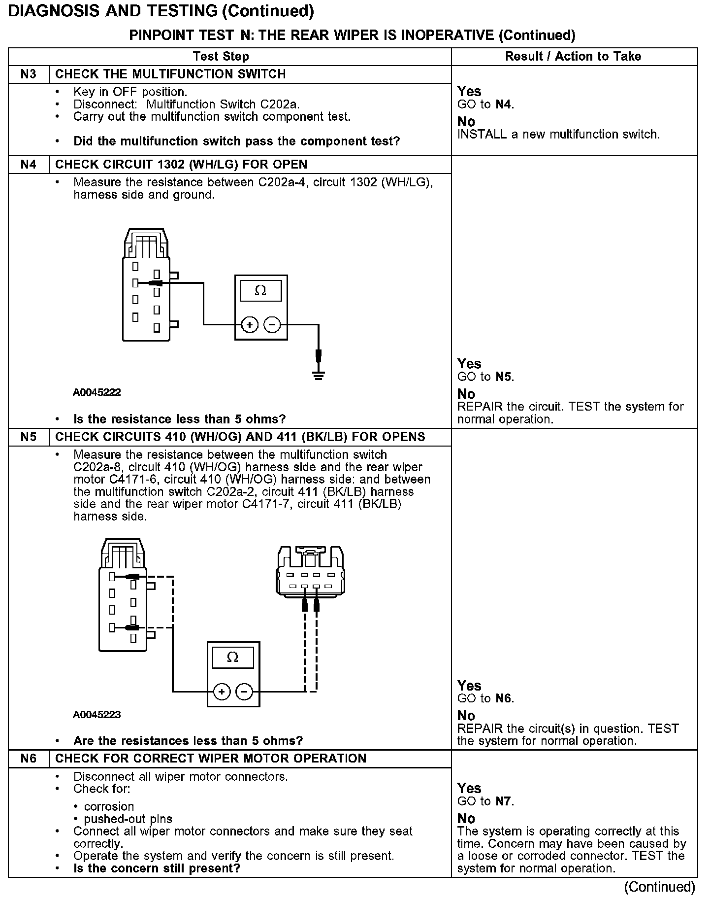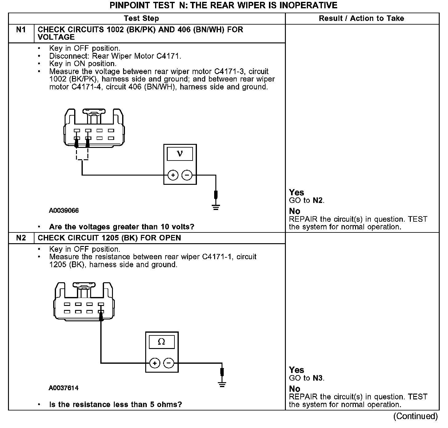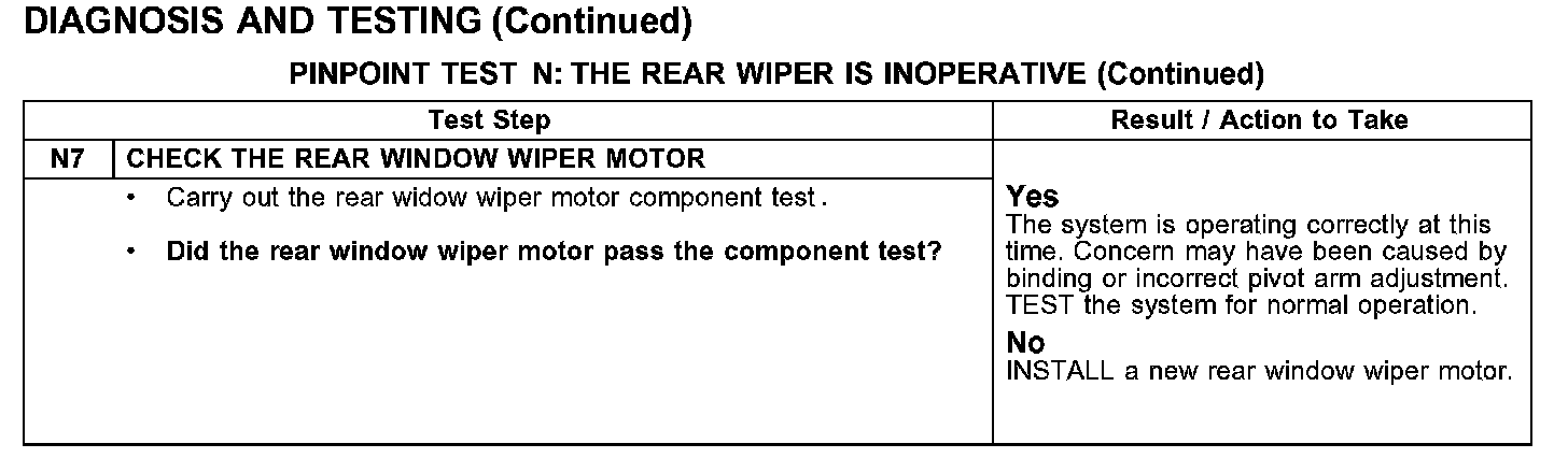 PINPOINT TEST N: THE REAR WIPER IS INOPERATIVETest N1-N2: