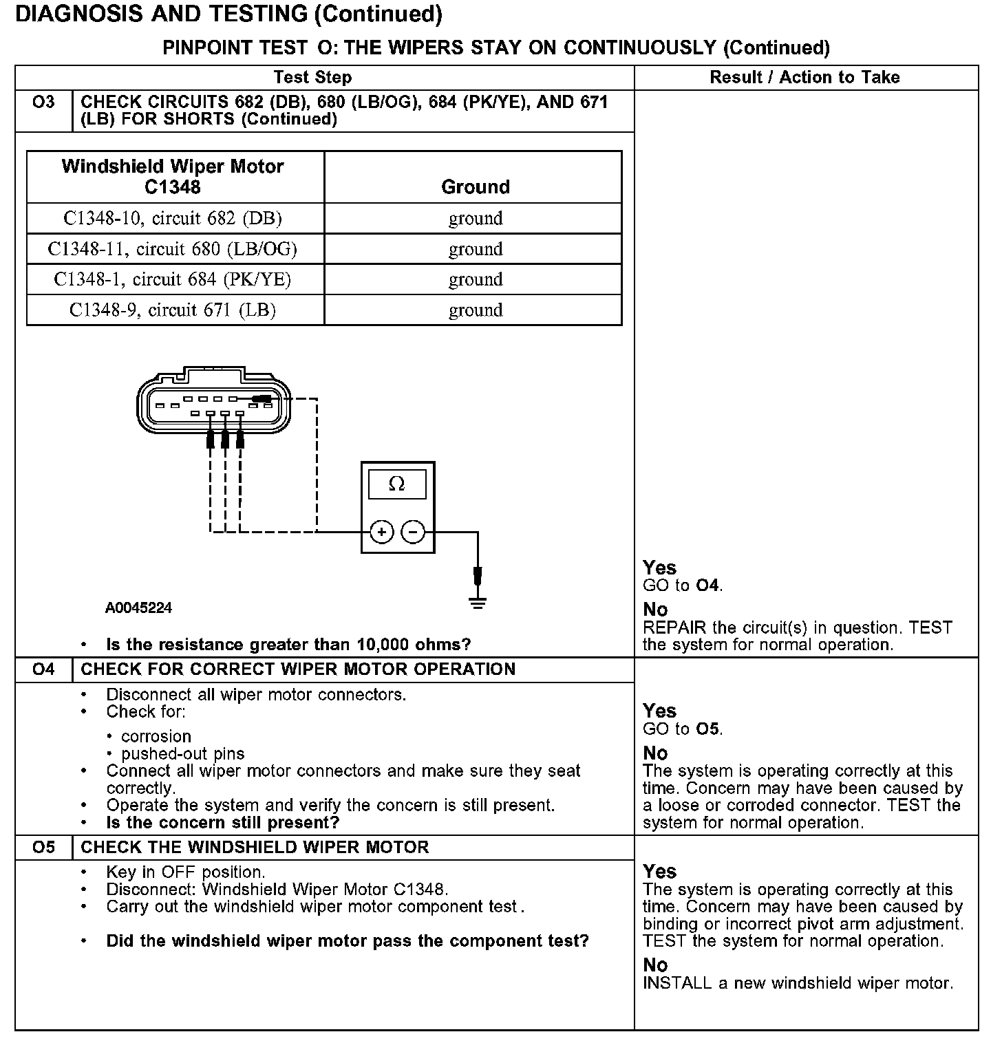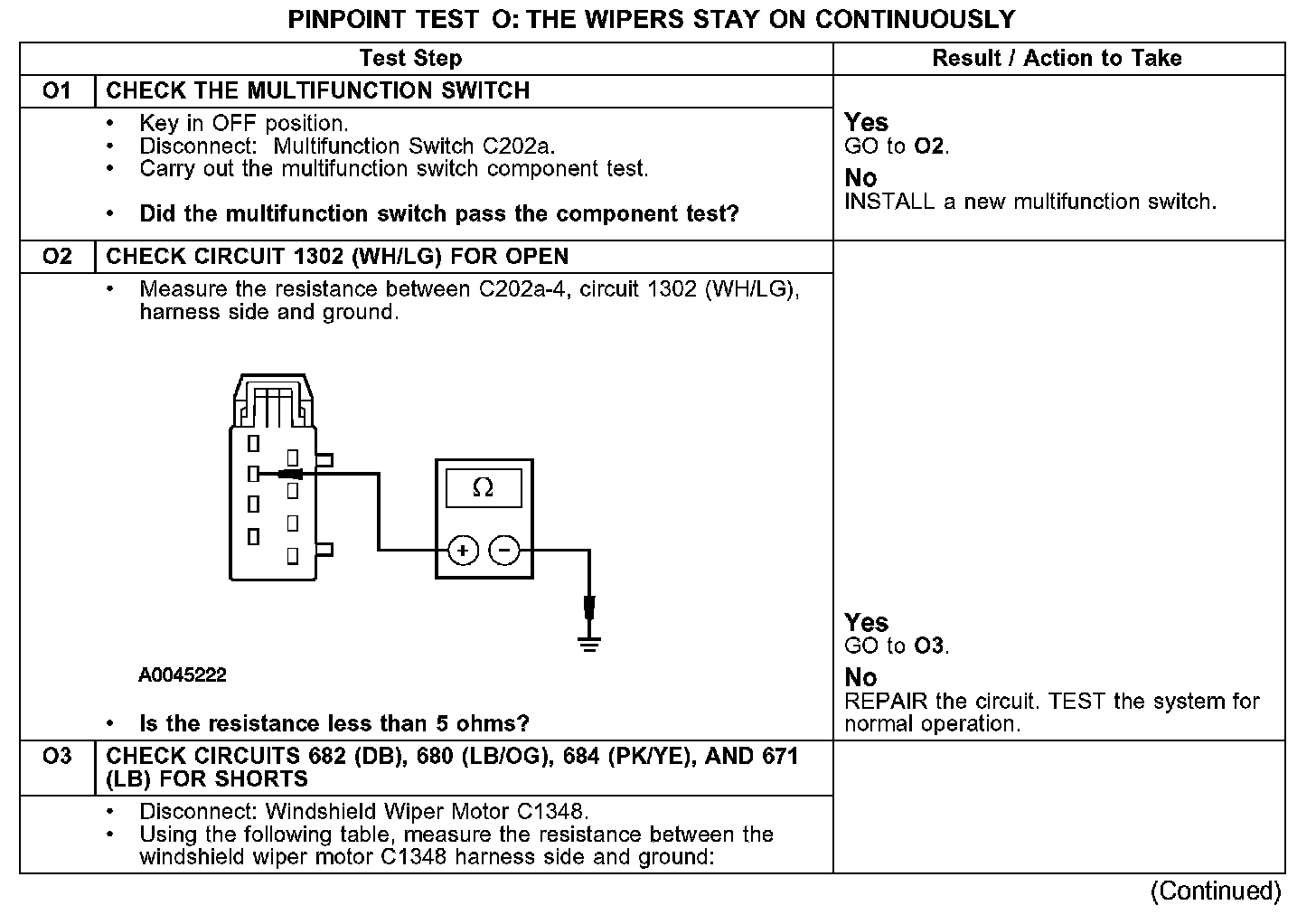PINPOINT TEST 0: THE WIPERS STAY ON CONTINUOUSLYTest O1-O3: