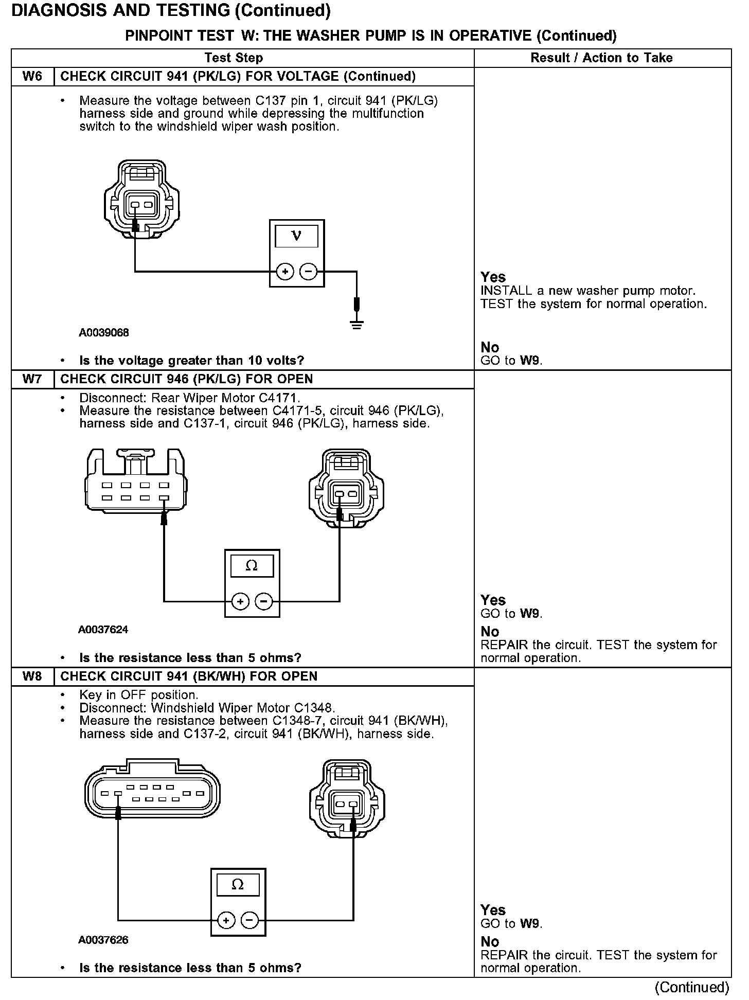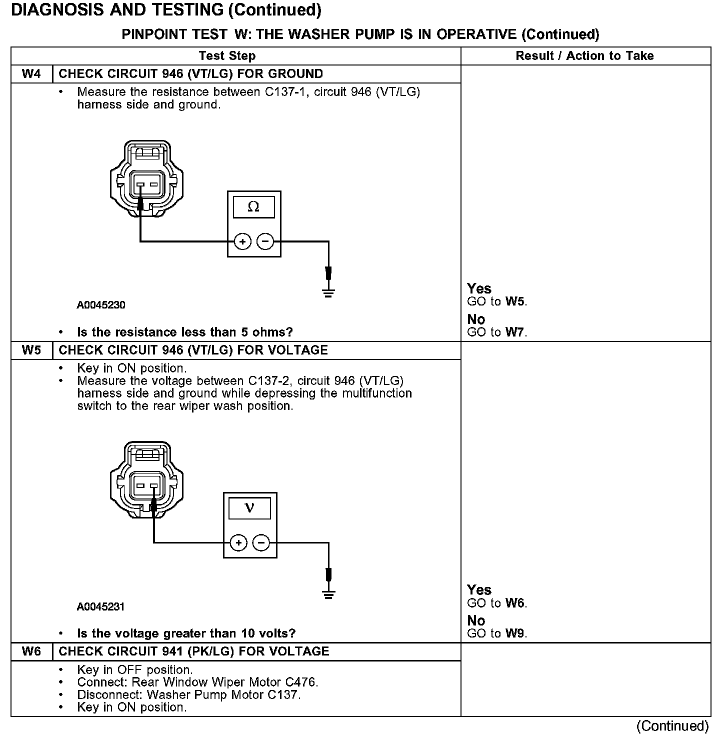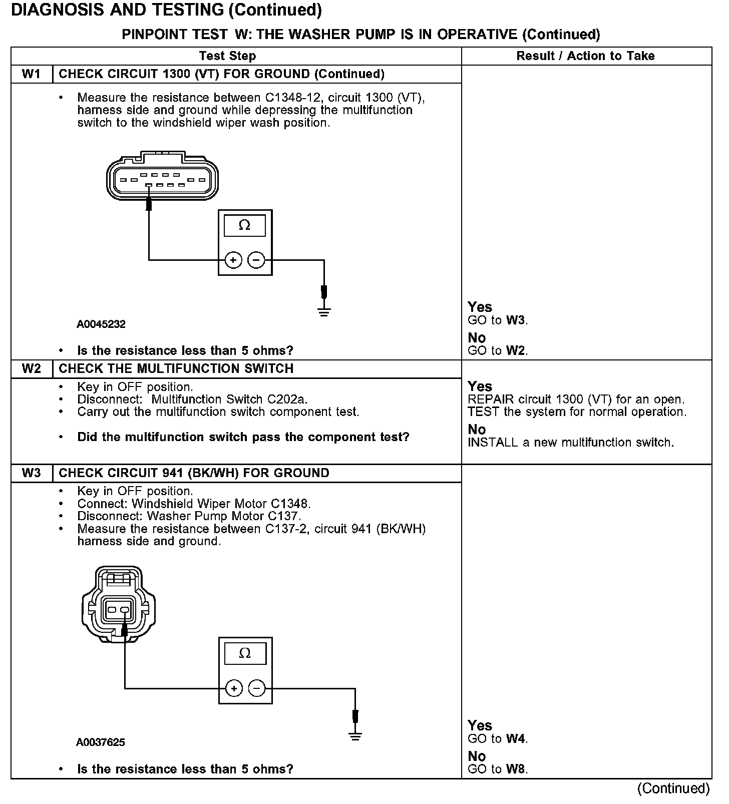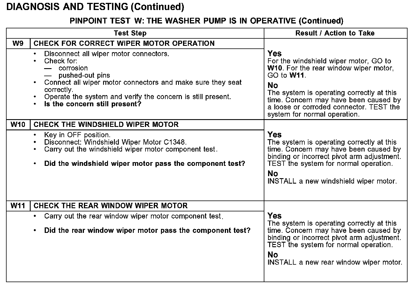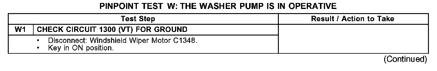 PINPOINT TEST W: THE WASHER PUMP IS IN OPERATIVETest W1:
