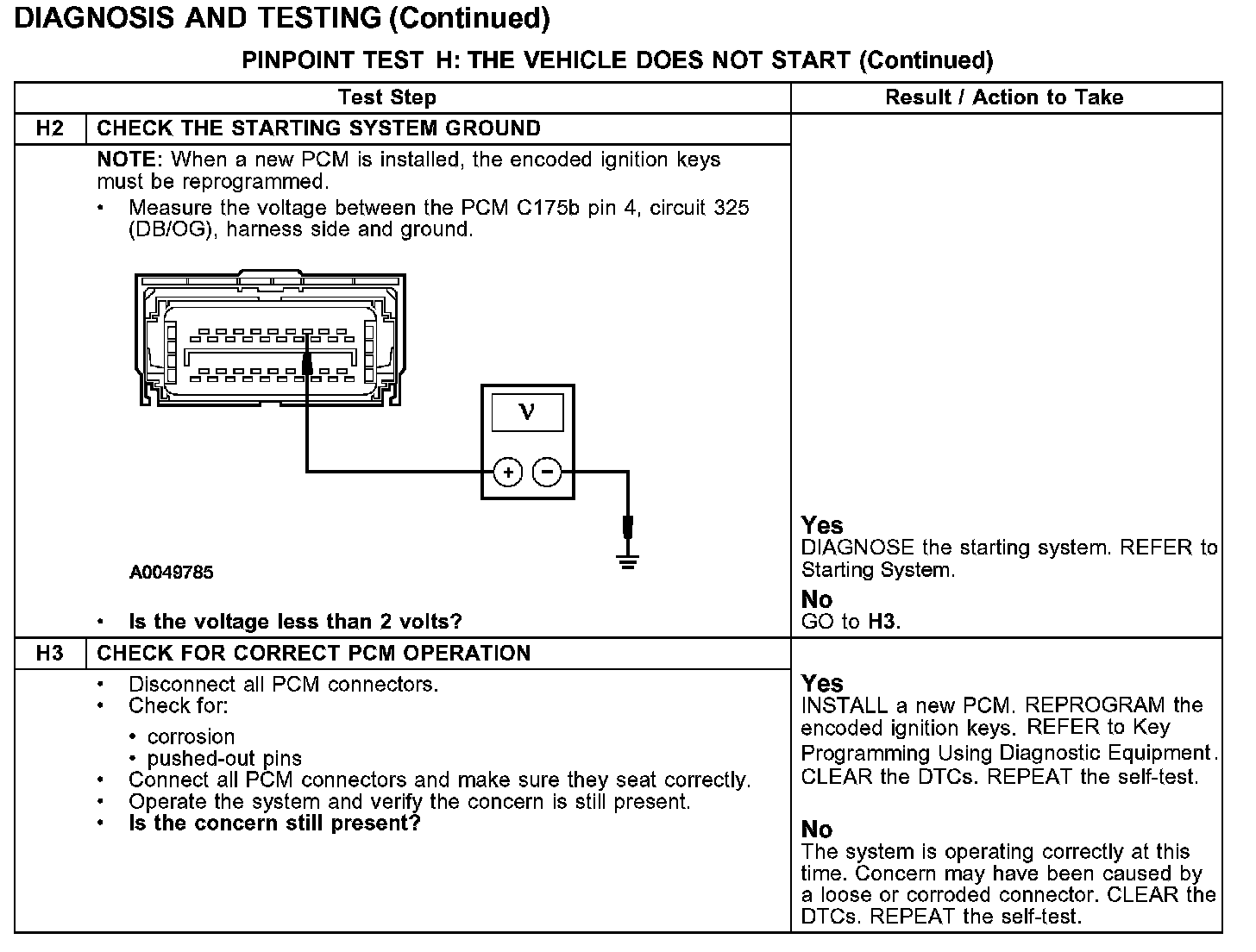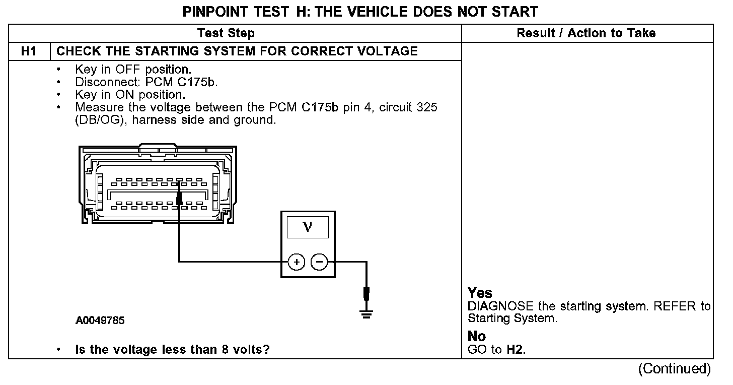 PINPOINT TEST H: THE VEHICLE DOES NOT START